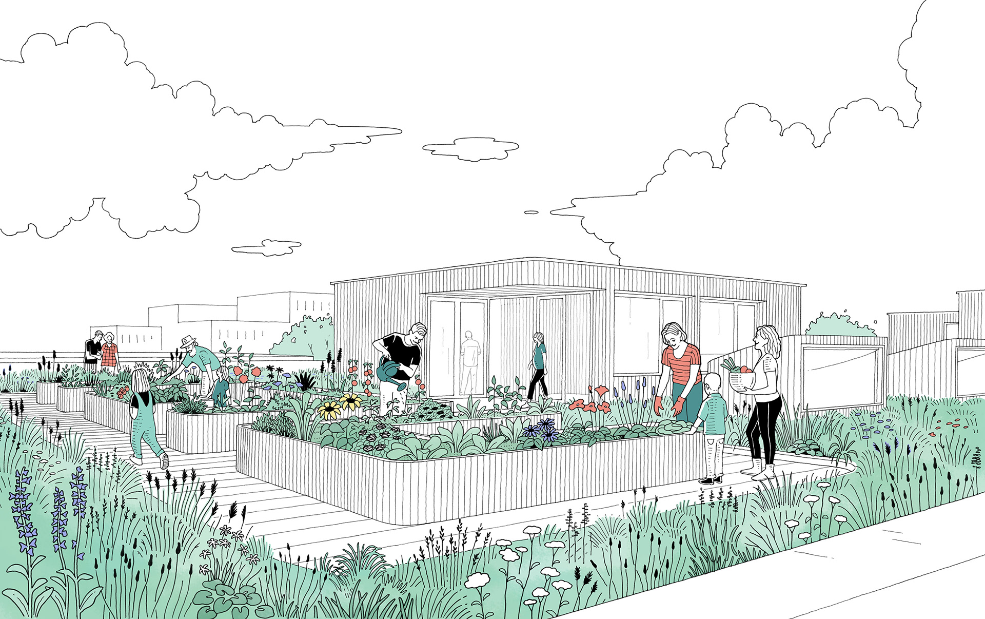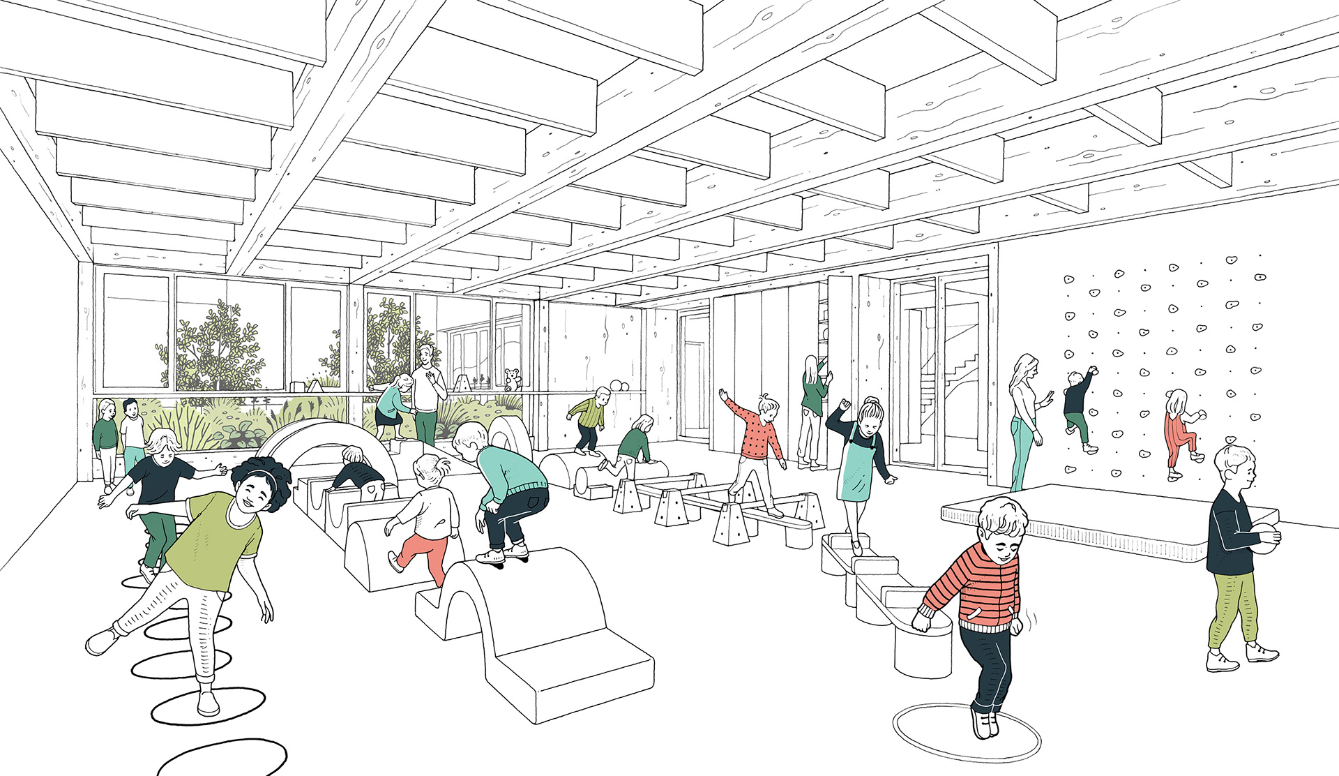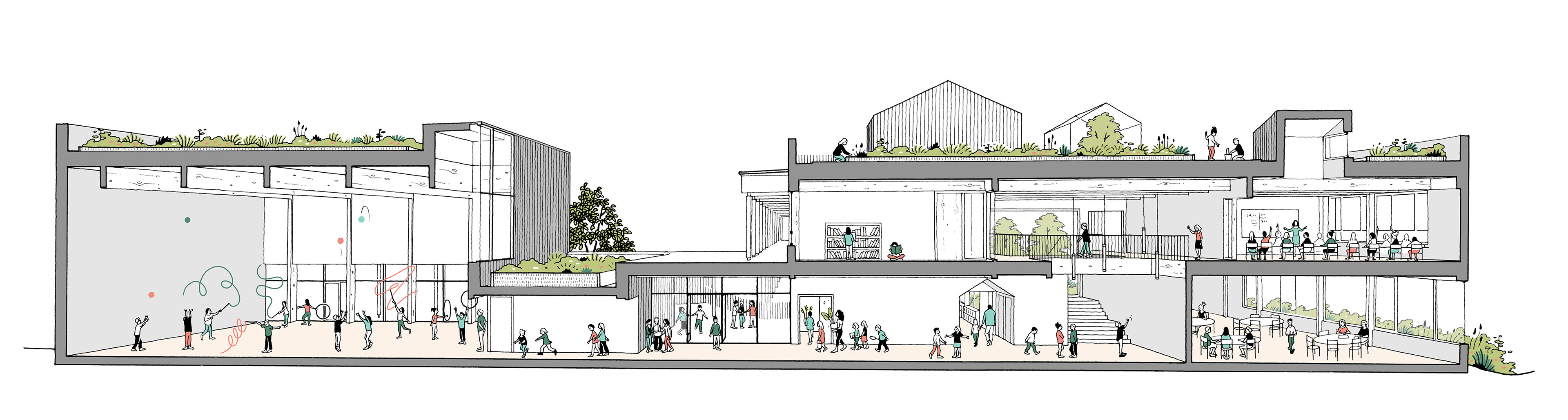 Illustrations réalisées pour un concours d'équipement sportif et éducatif à Chevilly-Larue.