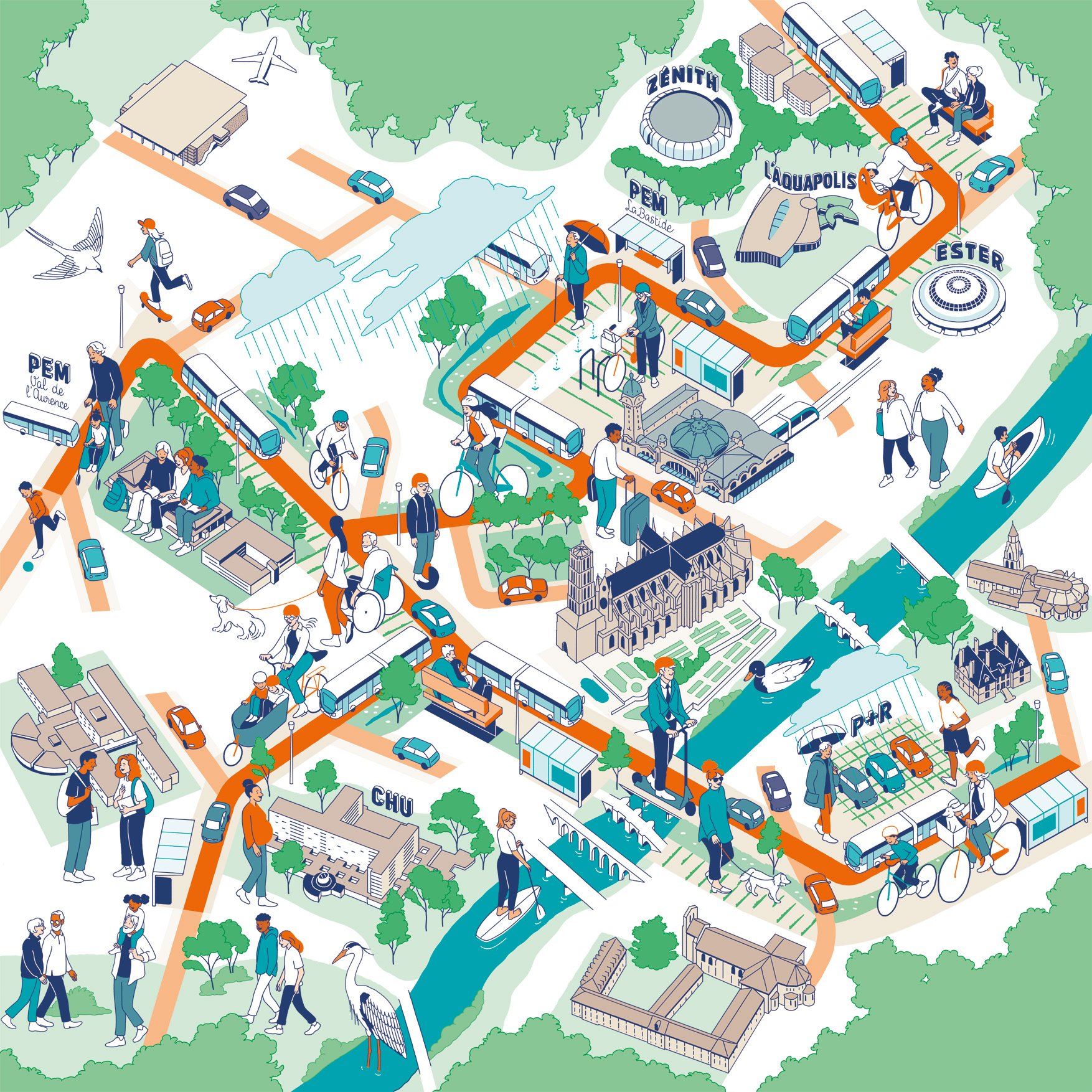 Création d’un dessin pour illustrer le projet de développement des mobilités durables à Limoges.